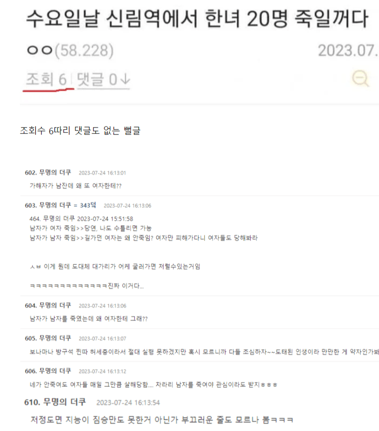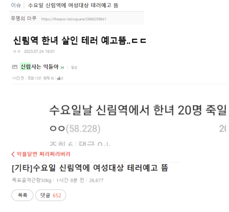 7월 24일 월요일날 신림역에서 무차별 살인을 예고하는 글이 인터넷에 올라와서 이슈가 되었습니다.