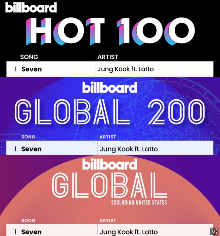 ▷ 정국의 Seven이 빌보드 차트 1위에 오른 쾌거를 이루어냈습니다.