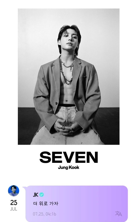 ▷ 정국 본인은 "더 위로 가자"라는 말을 남기며 본인은 더 성장할 것이라는 말을 남겼습니다.